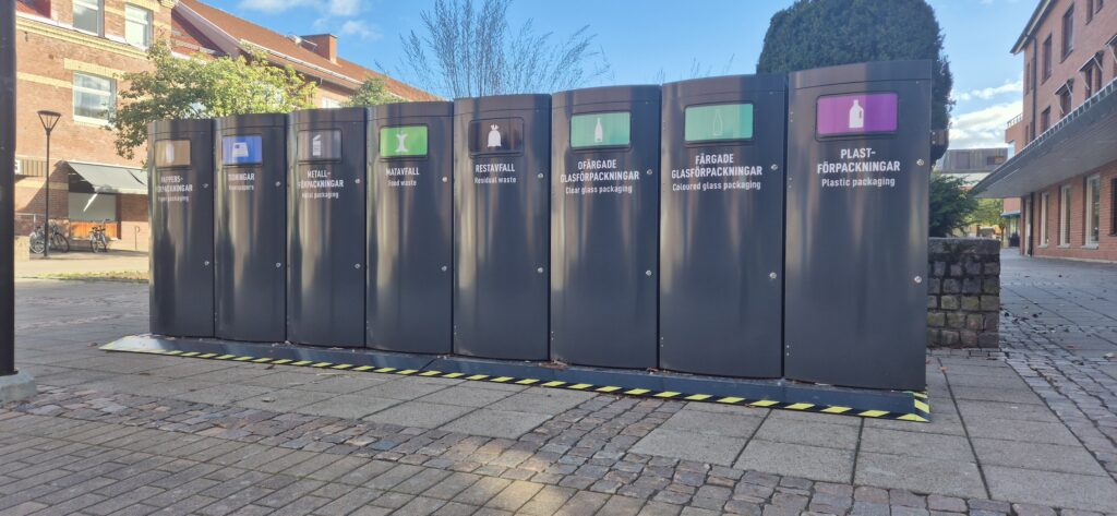Som tillval erbjuder vi en innovativ tilläggstjänst för realtidsmätning av fyllnadsgrad, vilket ger en ökad kontroll och effektivitet i hanteringen av källsortering utomhus. Se Street Smart.
